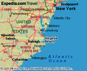 ![]() VIRGINIA BEACH IS LOCATED APPROXIMATELY 180 MILES SOUTH OF WASHINGTON, D.C.